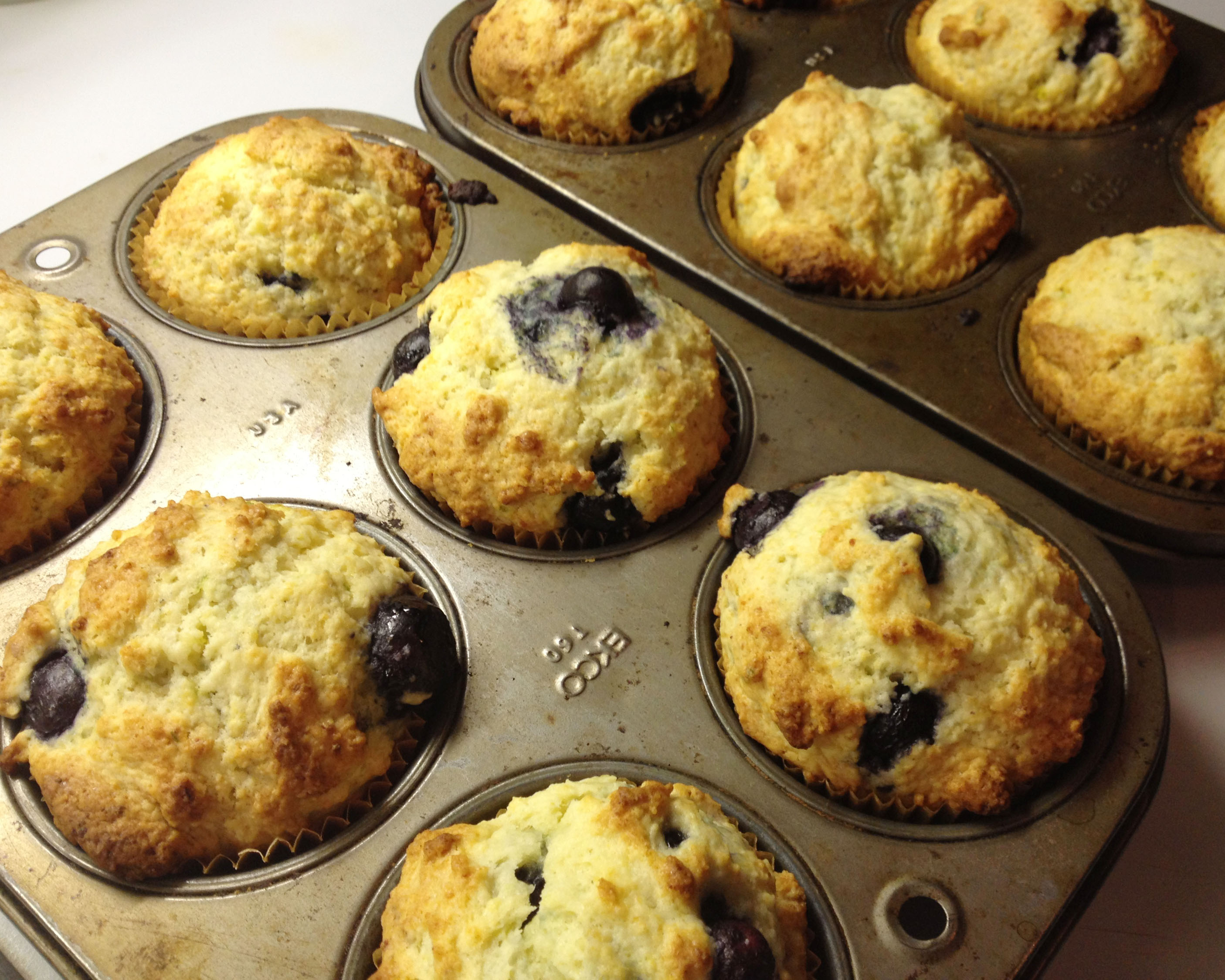 In the past, I’ve used blueberries to amp up my pancakes, scones, and crumb cakes. This week, they were my inspiration for muffins. I happened to have some fresh ricotta on hand, so I decided to try out this recipe by Dorie Greenspan (you may be noticing that I pick favorites, and Dorie Greenspan is one of them). The ricotta here substitutes in for other common dairy ingredients (whole milk, buttermilk, yogurt, sour cream), giving the muffins a hearty but fluffy texture once baked.