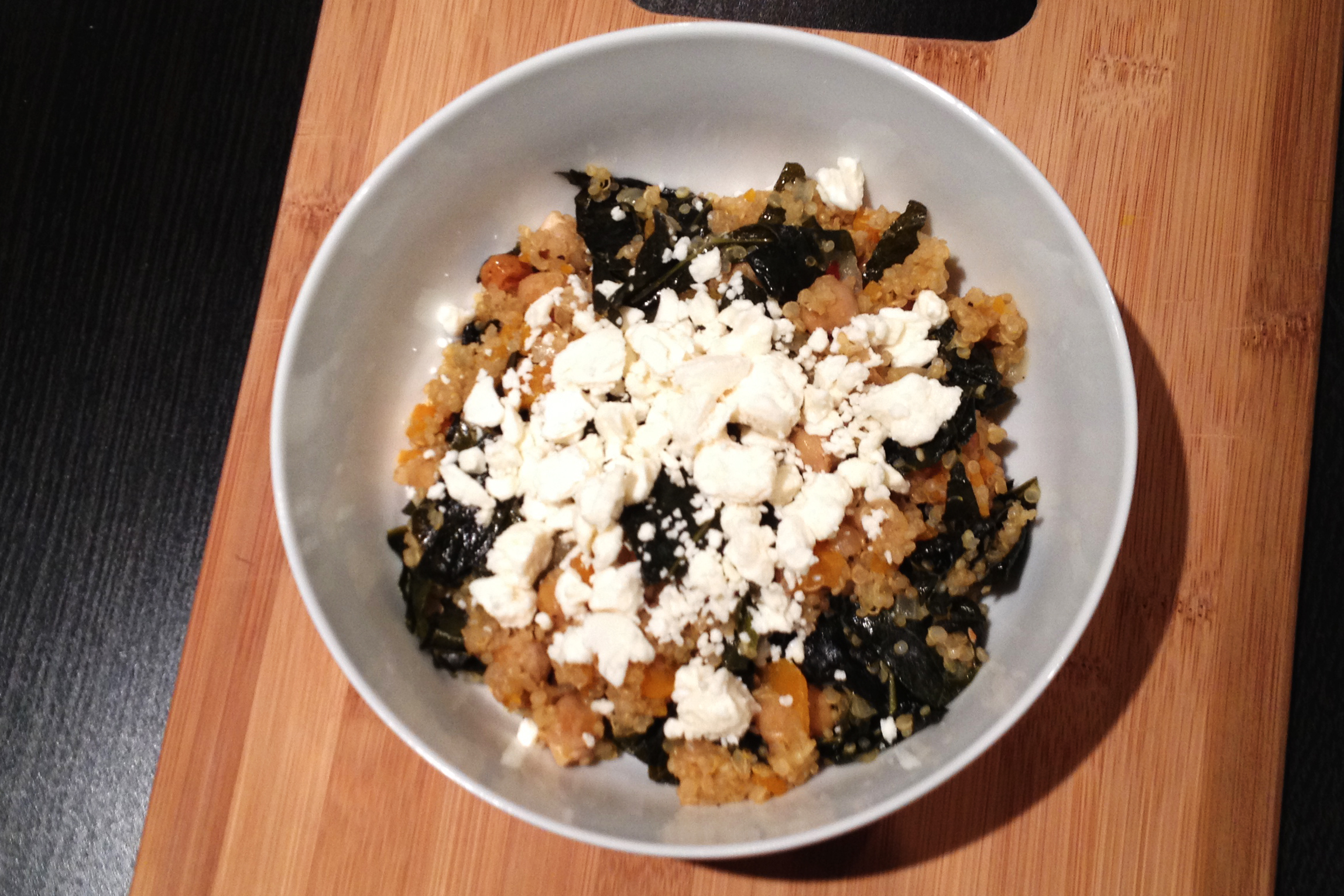 For me, this often meant one pot meals. The recipe here was one of my best, mixing together quinoa, kale, chickpeas, and feta. A batch lasted for about 2-3 servings, making it a great dish to prepare on a lazy Sunday afternoon.